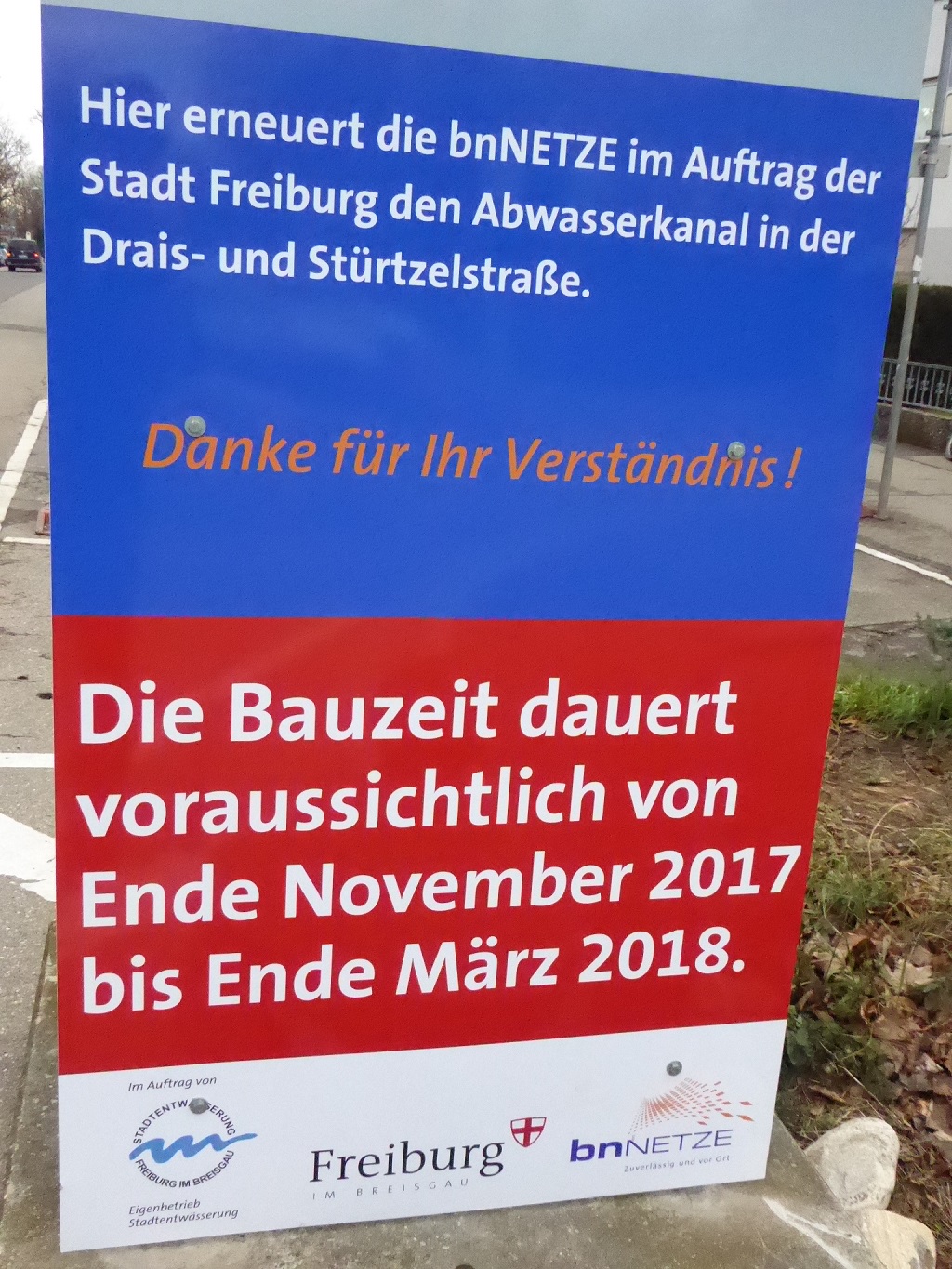 Beim aktuellen Straßenbau wird nur der Mischwasserkanal neu gebaut. Strom- und Telekommunikationsleitungen bleiben unangetastet. Nach dem Bau gehen die Verantwortlichen davon aus, dass die nächsten 20 Jahre an den Straßen nichts mehr gemacht werden muss. Der Bau in der Stürtzelstraße wird nicht, wie auf dem Bauschild angegeben, im März fertig, da aufgrund des Wetters die Draisstraße noch nicht fertig ist. Der westliche Bereich der Engelbergerstraße, die Drais- und die Stürtzelstraße werden dieses Jahr ab vsl. Juni komplett neu asphaltiert. In der Verlängerung der Engelbergerstraße wird über die Fehrenbachallee eine Querungshilfe gebaut. Dies ist ein „Buckel“ mit Zebrastreifen“, der auch für die Einhaltung der Geschwindigkeit der Autos sorgt.