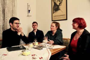Oberbürgermeister Martin Horn im Gespräch mit der Redaktion des Stühlinger MAGAZINs (v.l.n.r.): Julian Badura, OB Martin Horn, Yannick Kiesele, Redaktionsleiterin Nora Bayer und Gabi Rolland. Martin Horn stellt sich bei der Oberbürgermeisterwahl in Freiburg am Sonntag, den 26. April 2026, zur Wiederwahl.