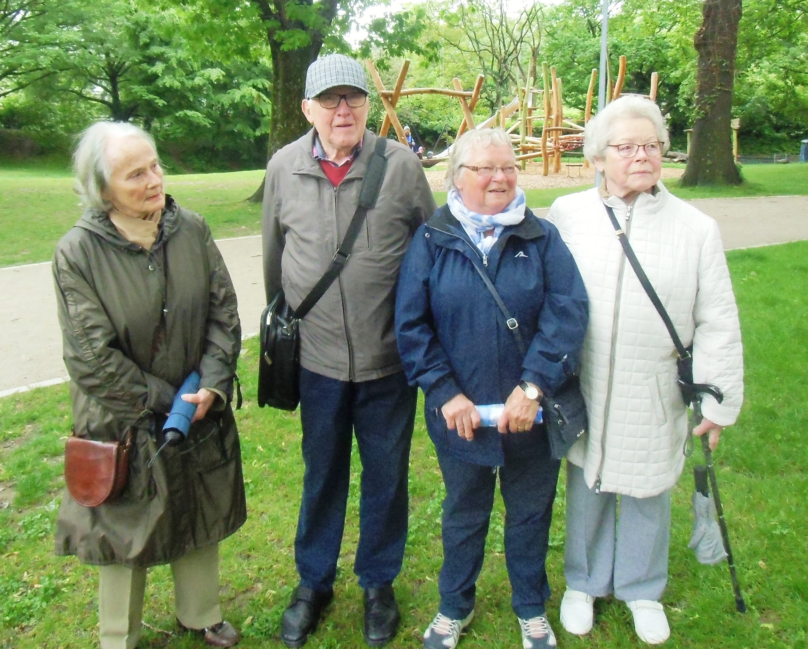 Am Ende der Gedenkfeier wurde noch in Kleingruppen über das Ereignis, und was es den Menschen heute bedeutet, gesprochen. Wie jedes Jahr waren auch diesmal Zeitzeugen anwesend: Gottfried Beck, 1932 in Freiburg geboren und Inhaber des Bettenhauses Stiegeler, berichtete, dass er den Fliegerangriff nur durch einen Zufall überlebt hatte. Sein Elternhaus, das sich über den an den Hildaspielplatz angrenzenden Bahngleisen befand, wurde durch den Fliegerangriff völlig zerstört. Nur weil er sich in der benachbarten Schule befand, wurde er nicht getötet. Käthe Obermaier-Hiß, damals acht Jahre alt und Schülerin der Hebelschule, verlor zwei Klassenkameradinnen durch Tod auf dem Spielplatz. Roswitha Wenz, geborene Kick, ist nach dem Angriff geboren. Sie konnte ihre ältere Schwester Irene Kick niemals kennenlernen, weil sie ebenfalls auf dem Spielplatz durch die Bomben ums Leben kam. Ebenfalls auf bei der Gedenkfeier dabei war Gertrud Vetter, die Cousine von Irma Kick. Gottfried Beck, der den Fliegerangriff hautnah miterlebt hat, machte im Gespräch deutlich, dass solange er lebe mithelfen wolle, die „nächsten und übernächsten Generation davon zu überzeugen, sich dafür zu engagieren, dass solche Ereignisse sich nicht wiederholen dürfen!“