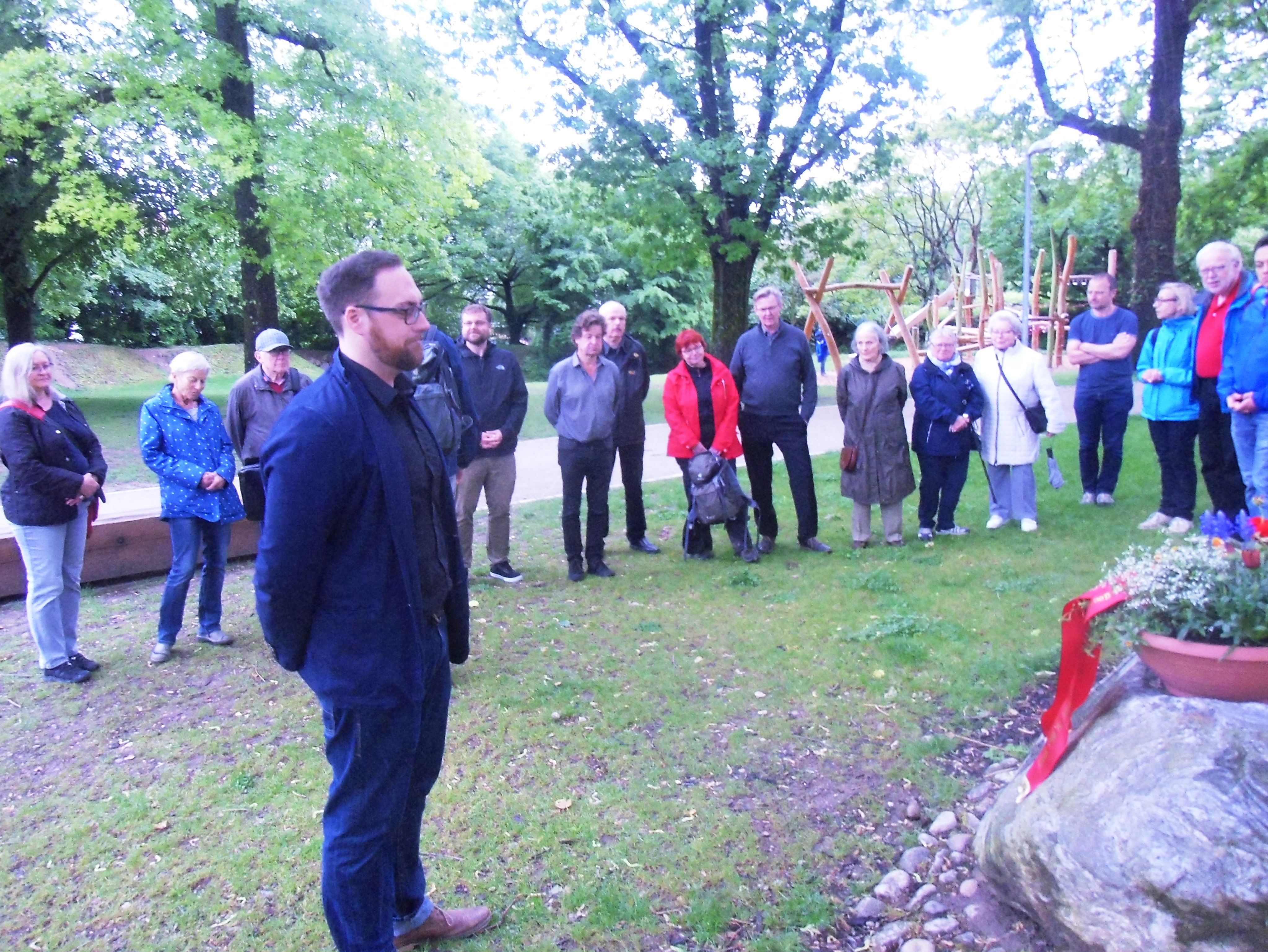 Zu den Teilnehmern der Gedenkveranstaltung gehörte auch der Erste Bürgermeister der Stadt Freiburg, Ulrich von Kirchbach. Er bedankte sich bei den Vertretern der Stühlinger SPD, dass der SPD Ortsverein an jedem Jahrestag die Gedenkfeier durchführt.